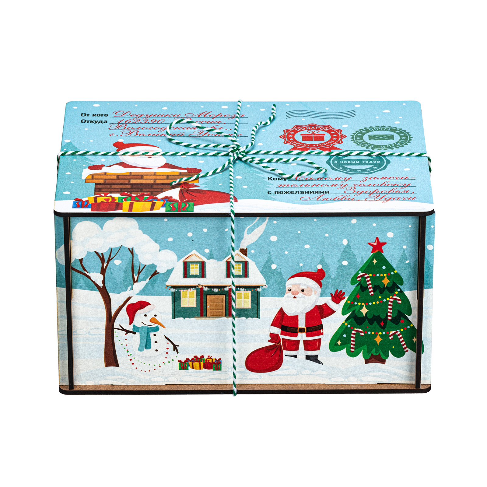 Новогодние сладкие подарки в деревянных упаковках уже не первый год пользуются высоким спросом у покупателей. Это не просто так - такие подаркаи отличаются оригинальностью и практичностью. Набор “Мятная ночь” не исключение. Это небольшая деревянная коробочка с виду напоминающая бандероль. Упаковка отличается необычным приятным цветом, который прекрасно сочетается  с разннобразными новогодними рисунками, помещенными со всех сторон. Сверху подарок перетянут удобной ручкой-шнурком. Набор состоит из килограмма разнообразных кондитерских изделий и небольшой памятный сувенир в виде лошадки - символа 2026 года.